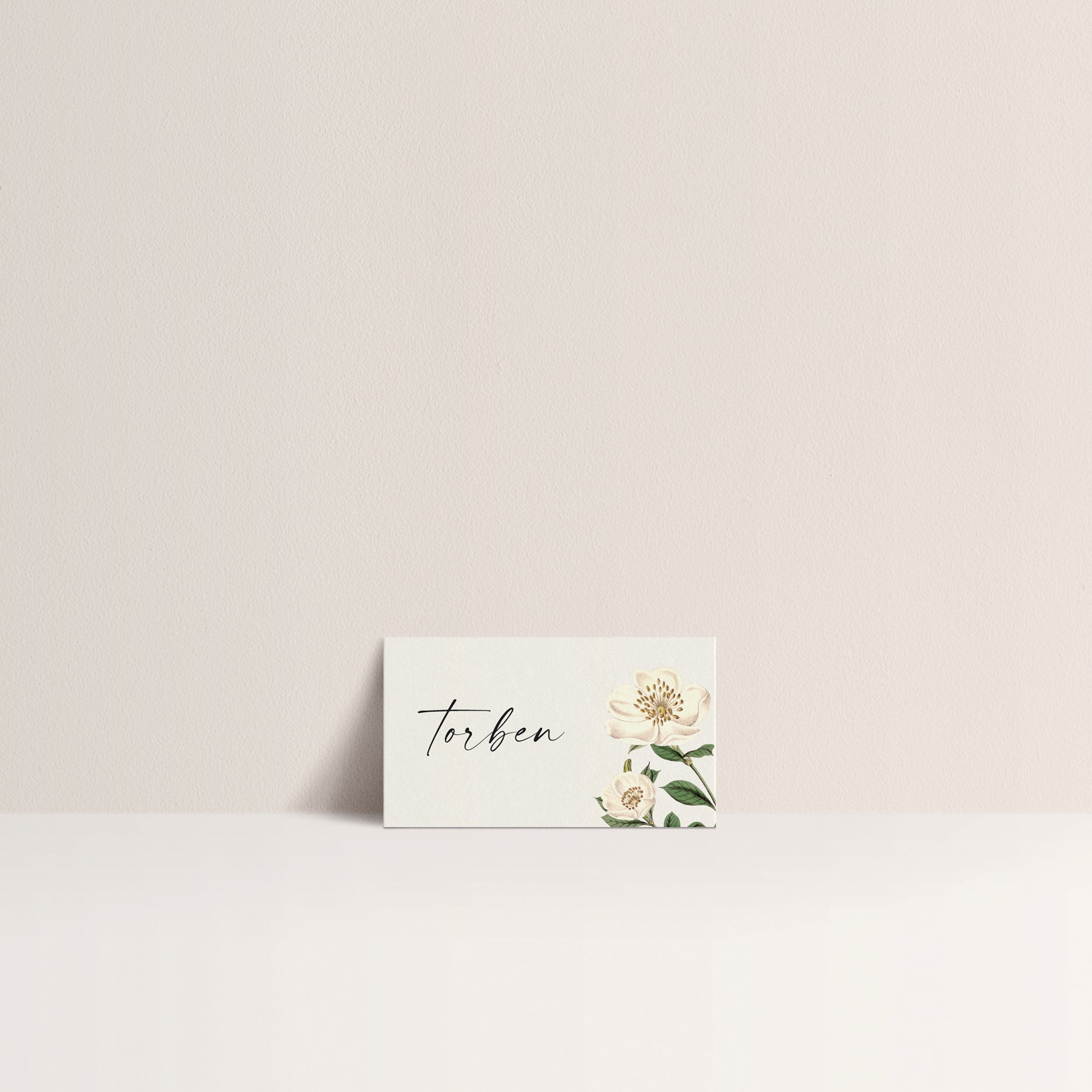 Bordkort med navn i matchende font som de andre elementene i denne kolleksjonen.