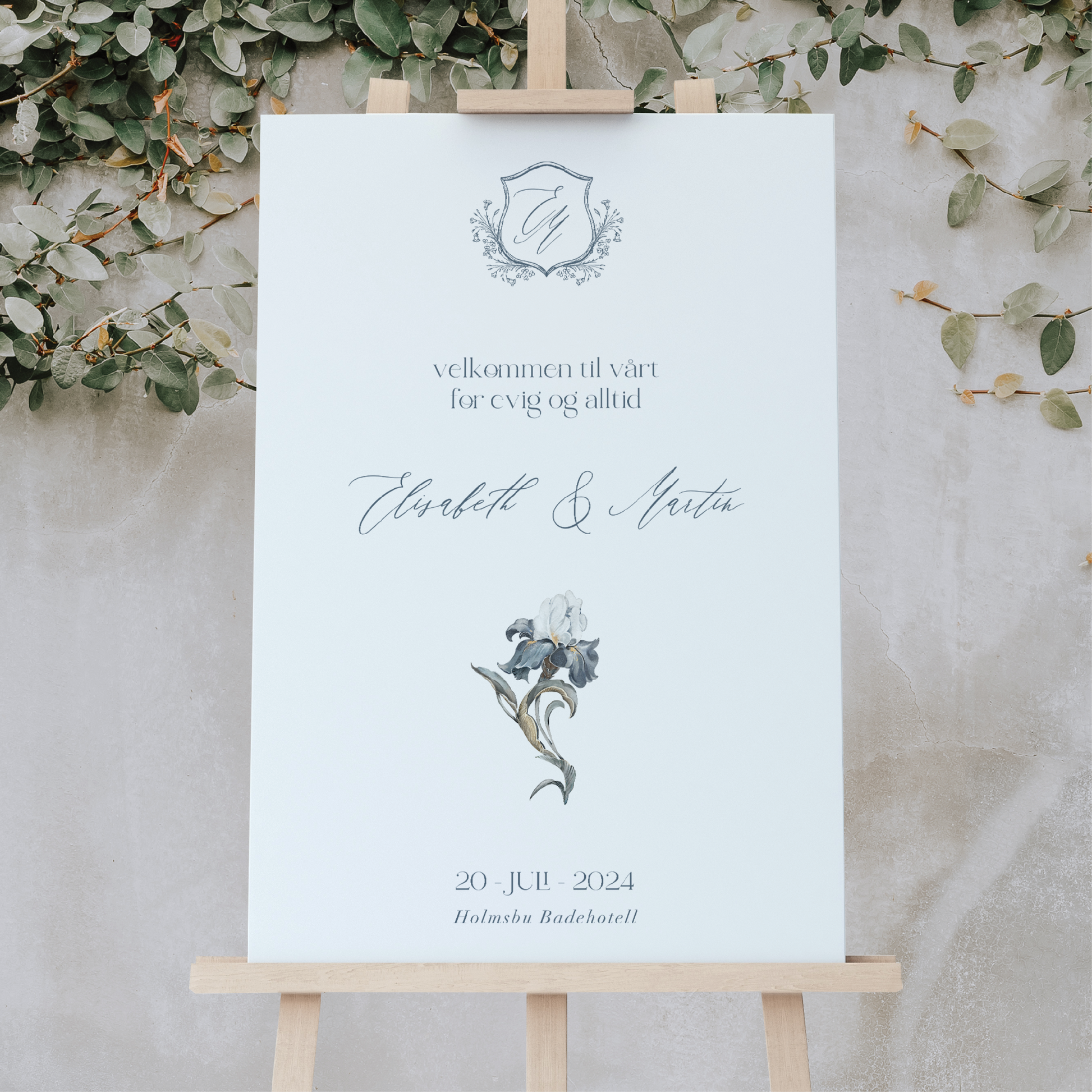 Velkomstskilt kommer i størrelse 50x70 cm (plakatstørrelse) og er printet på tykk Kapa-plate som kan settes på staffeli eller lignende.